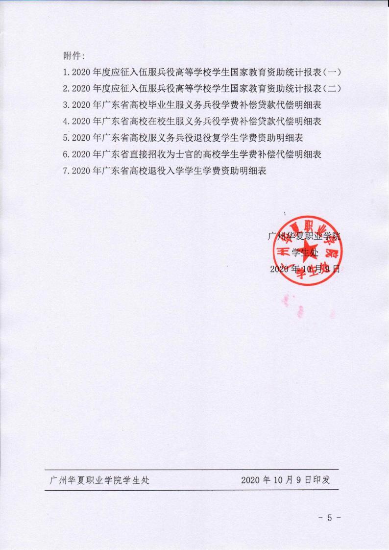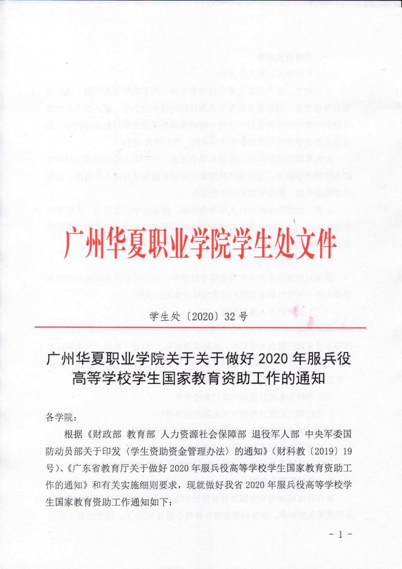 广州华夏职业学院关于关于做好2020年服兵役高等学校学生国家教育资助工作的通知