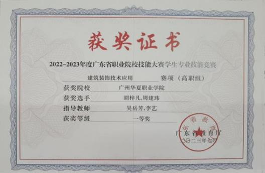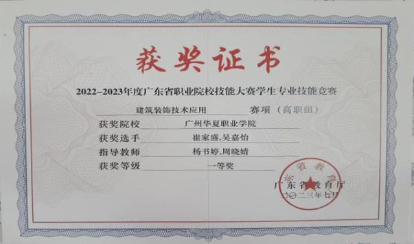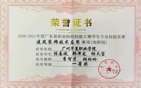 图4 指导学生获奖(广东省学生技能竞赛—建筑装饰技术应用赛项)
